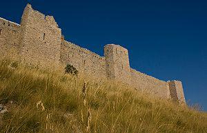 Il castello racchiude al suo interno tutte le strutture principali dei borghi dell’epoca medievale: un complesso monastico, una chiesa a tre navate e con tre absidi e un edificio principale di forma quadrangolare tipica delle fortezze normanne.